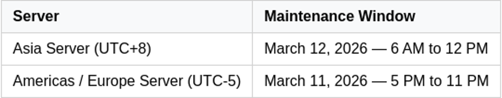 Scheduled Server Maintenance and Update