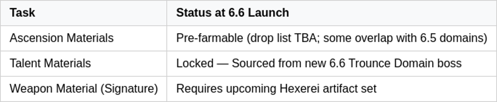 Players can begin pre-farming certain ascension materials immediately